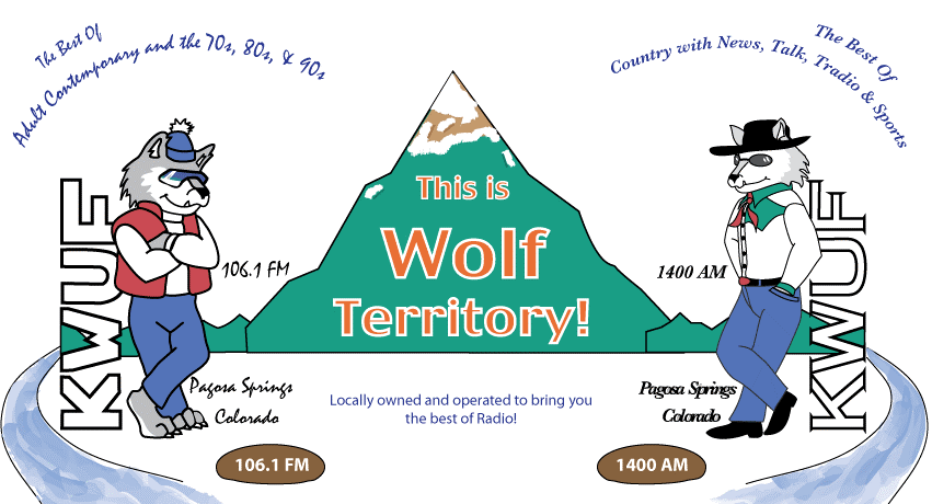 KWUF 1400 AM is country music and local talk radio at its very best: all the new country hits with a liberal sprinkling of classics, plus local topics on "Good Morning Pagosa" every weekday.