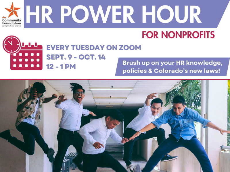 HR Power Hour takes place on Tuesdays at 12 PM from September 9 to October 14, via Zoom. The cost is $10/session or $50 for all 6.