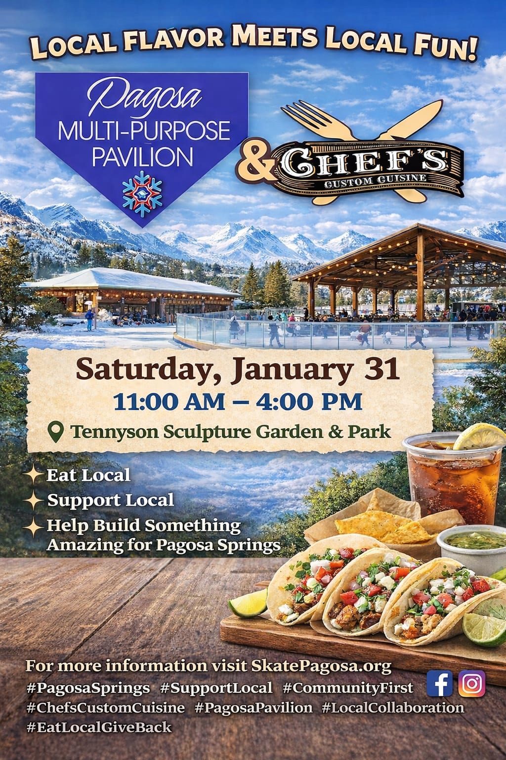 We’re excited to announce an upcoming restaurant collaboration between the Pagosa Multi-Purpose Pavilion and Chef’s Custom Cuisine right here in Pagosa Springs!